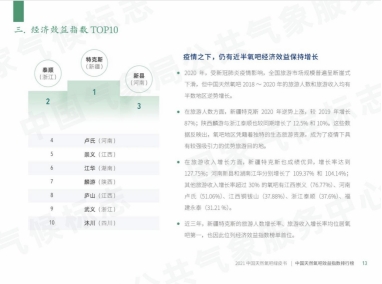 《2021中国天然氧吧绿皮书》以2016~2020年授予并保持称号的193家中国天然氧吧地区为研究对象,对其生态资源画像、品牌效益表现、旅游及消费行为特征、公众舆情等方面进行数据分析。《绿皮书》将为中国天然氧吧地区的下一步发展提供指导参考,推动生态产品价值更好实现。