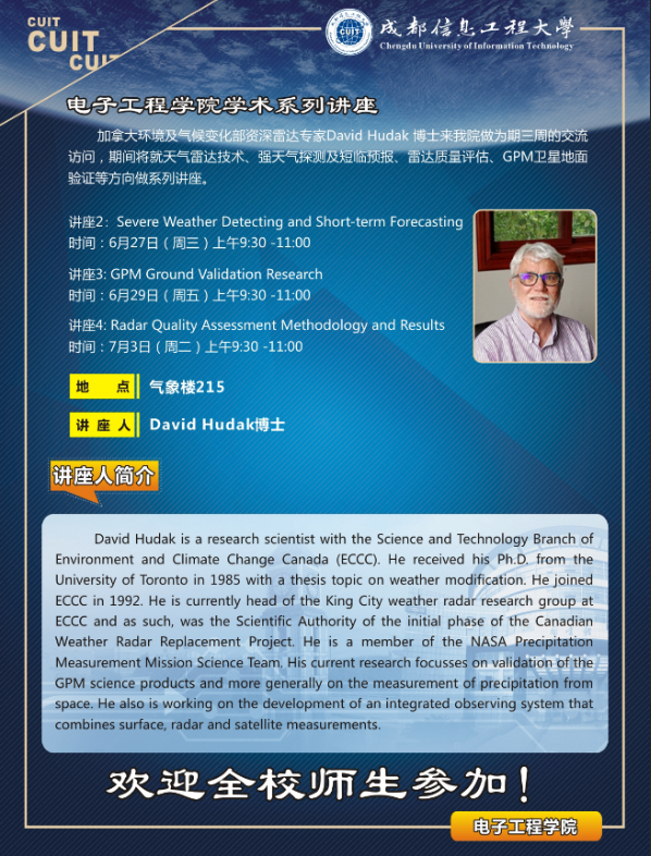 【学术预告】加拿大环境部资深雷达专家David Hudak 博士系列学术讲座预告