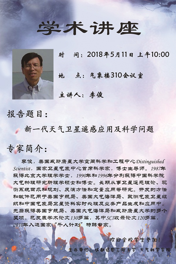 来源:大气科学学院 作者:尹欣日期:2018-05-09 审核:新闻中心 点击: