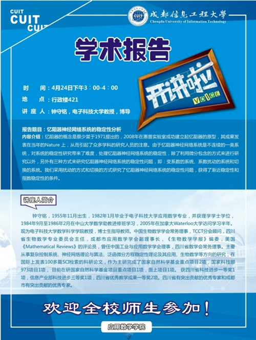 来源:应用数学学院 作者:李婧雯日期:2018-04-19 审核:新闻中心 点击: