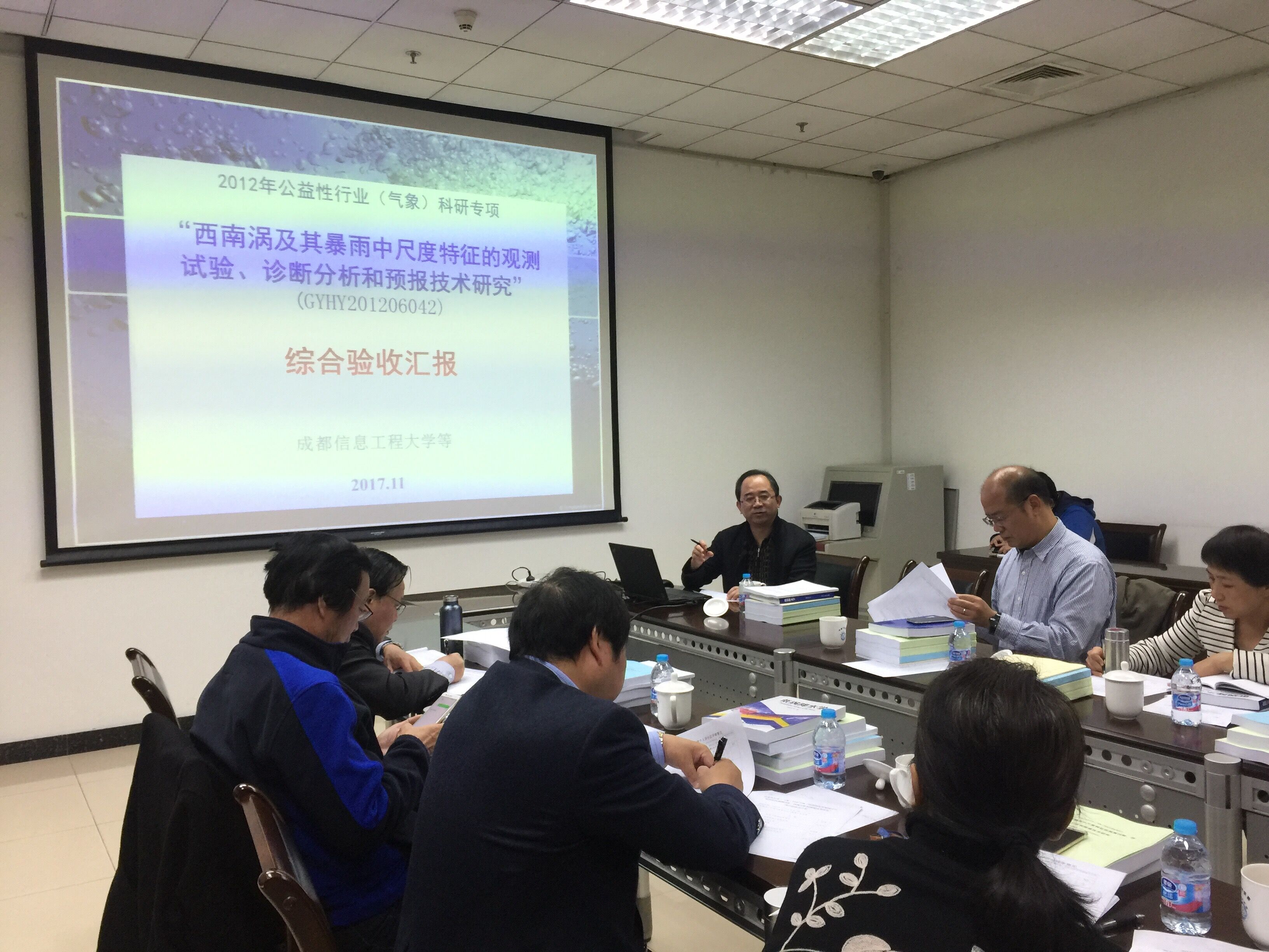 验收专家组由来自中国气象局数值预报中心、中国科学院大气物理研究所、北京大学、南京大学、中国地质大学(武汉)、国家气象中心、中国气象局气象干部培训学院、中国气象局武汉暴雨研究所和云南省气象科学研究所的9名相关领域知名专家组成。项目承担单位和协作单位的课题成员代表参加了会议。