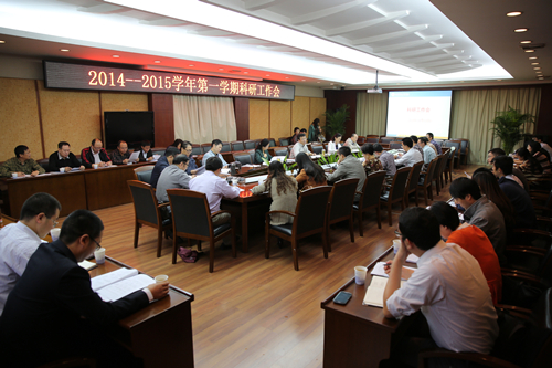 本网讯]10月11日,学院2014-2015学年第一学期科研工作会在航空港校区召开,全体院领导、相关职能部门负责人、各学院院长和分管科研的副院长及部分科研骨干参加了会议。