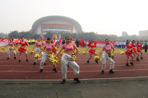 入场仪式结束后,进行了精彩纷呈的节目表演,体育部的龙狮翻滚、大刀武术、杂耍篮足球、穿花跳绳、杂技自行车、舞动空竹、健美运动舞等,展示了我院近年来体育教学改革的丰硕成果,2013级国防生警卫拳表演展示了我院一道亮丽的国防绿,跆拳道节目表演打出了“成于大气、信达天下”和“预祝升大成功”的标语,展现了成信学子良好的精神风貌和对学院美好的祝愿。