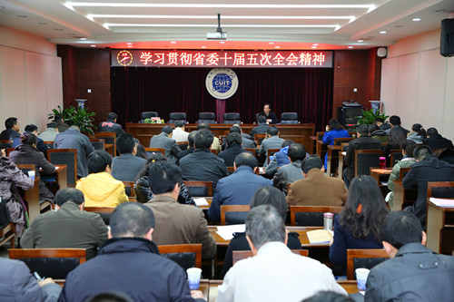 [本网讯] 12月3日下午,学院在行政楼一会议室召开中心组学习会学习贯彻省委十届五次全会精神。全体校领导、处级干部参加了学习,会议由学院党委副书记倪鸣主持。