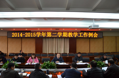 【本网讯】2015年3月11日下午,学院在第七会议室召开了本学期第一次教学工作例会,会议由教务处副处长陈敏主持,副院长何建新,各教学单位分管副院长(主任)、教务处、教师教学发展中心负责人和相关人员参加了会议。