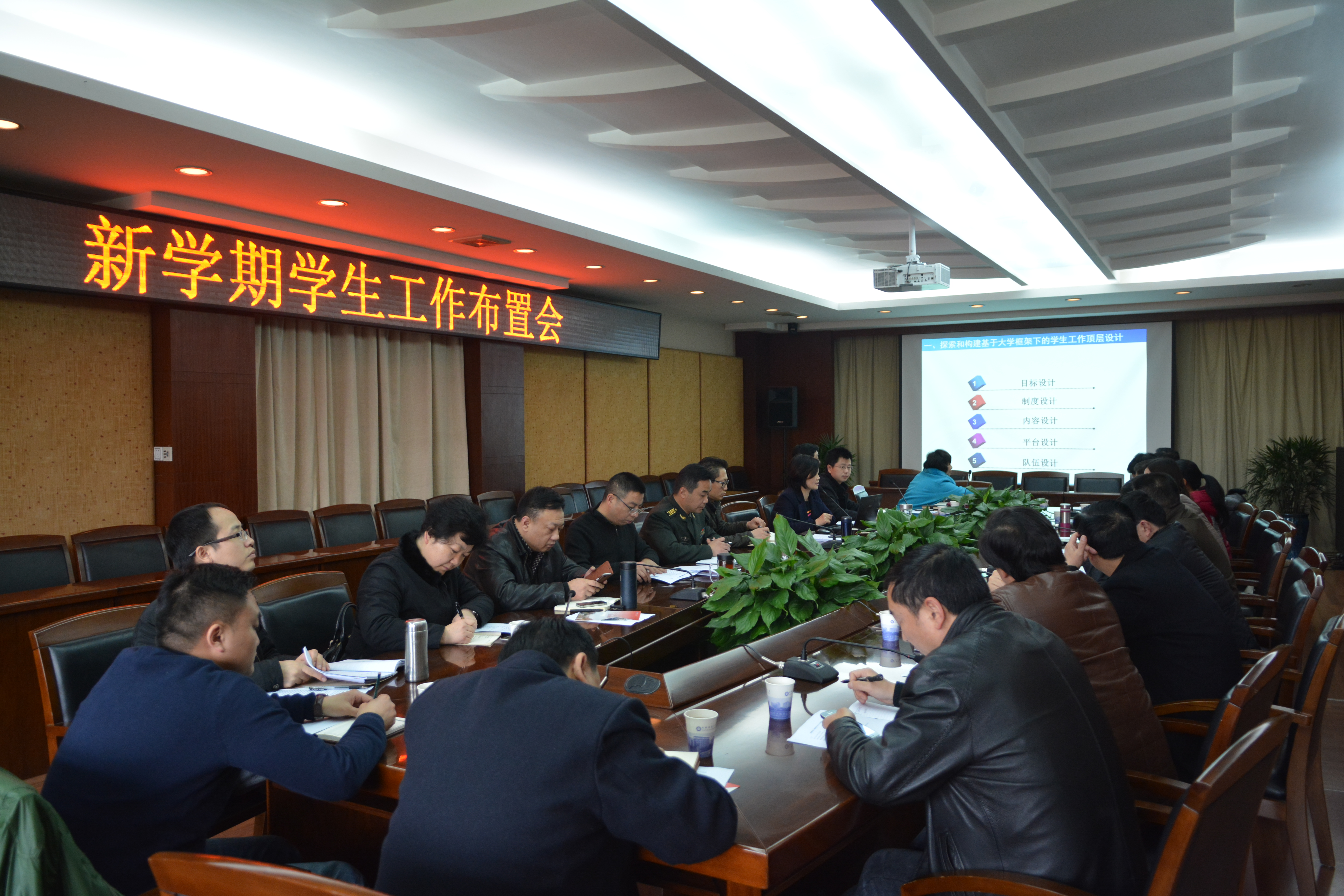 【本网讯】3月10日下午,学院在行政楼第七会议室召开新学期学生工作布置会。会议由学院副院长于世祥主持。学生工作处、驻校选培办、校团委负责人,各学院党总支书记、副书记,学生工作处相关人员参加了会议。