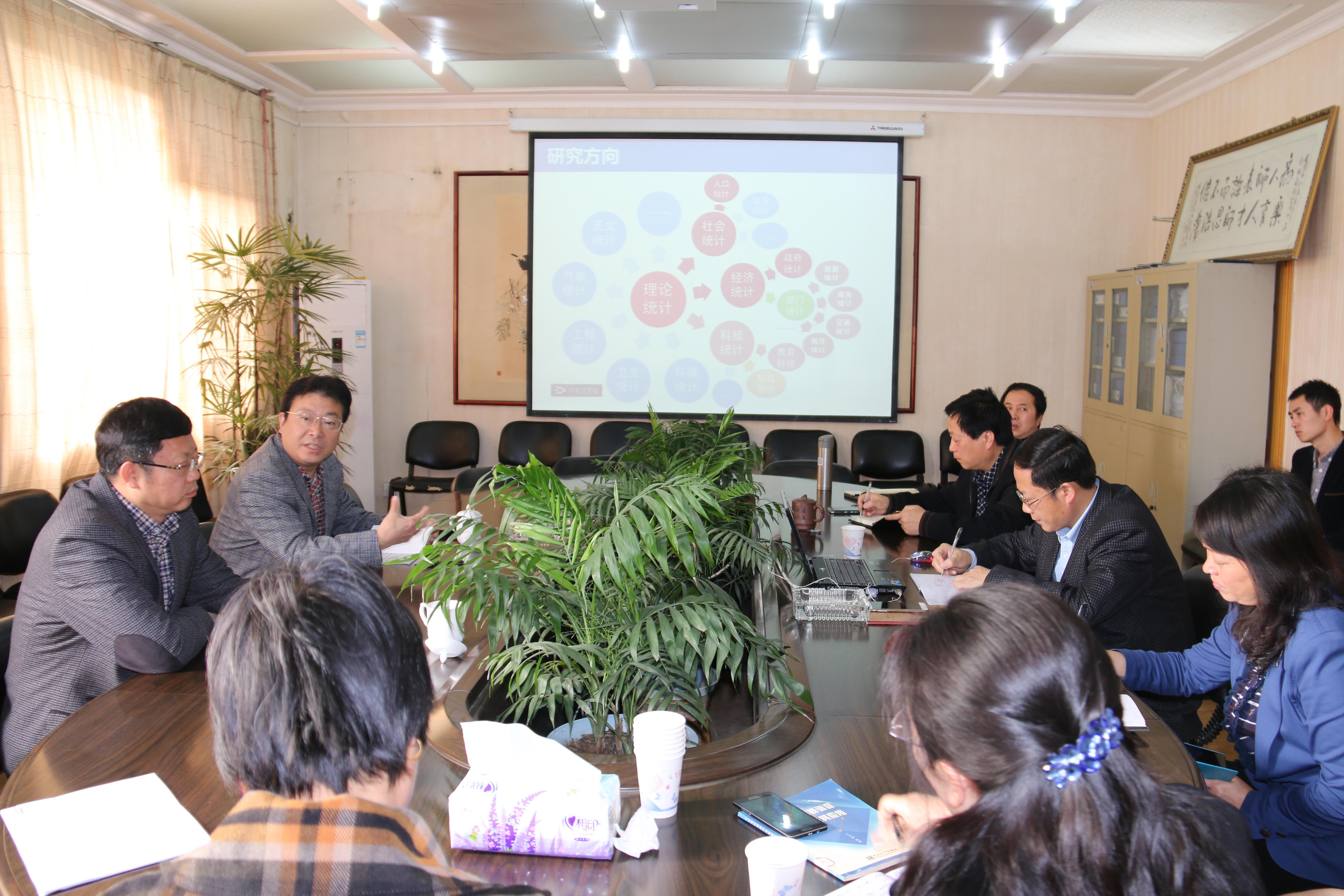 朱胜教授首先代表统计学院汇报了近年来统计学科的发展情况,并从学科在人才培养、学科规模、学科水平及学科研究领域的四个定位,谈到学院在学科水平、学科特色、人才队伍建设、教师科研积极性、研究生教育规模及深化与政府统计系统的联系与合作等六个方面面临的问题,提出了明确和稳定学科布局、加快学校人事分配制度改革、加大引进与培养人才力度、启动局省共建机制等八项发展思路。刘全教授补充了基于“大数据”的信息搜集平台建设。