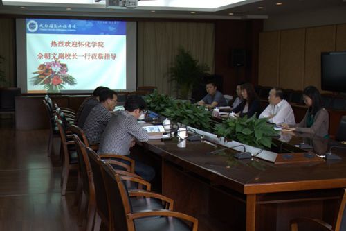 何建新首先对怀化学院同仁的来访表示欢迎,并介绍学院发展历程、学科专业概况。佘朝文介绍怀化学院简况和来访目的。座谈会后,佘朝文一行参观了电子实验中心和商学院实验室,了解实验室具体的运行和管理模式。双方就共同关心的卓越工程师教育、教育教学一体化改革、实践教学改革等议题进行了深入的探讨和交流。