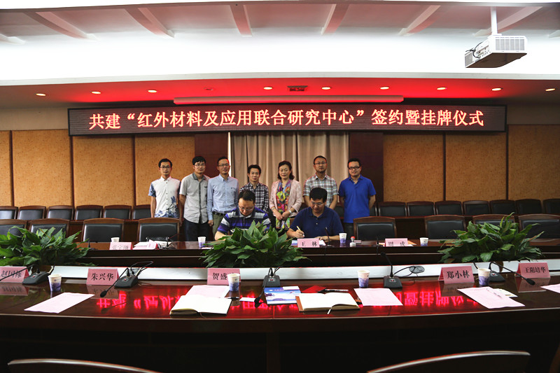 贺盛瑜与王林为红外材料及应用联合研究中心授牌。