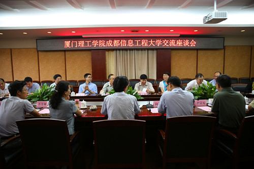 【本网讯】5月15日,厦门理工学院党委书记黄如欣、副校长朱文章、吴克寿一行来校考察交流。我校党委书记赖廷谦、党委副书记敬枫蓉,副校长向武在第七会议室与考察组进行了座谈交流。座谈会由敬枫蓉主持。