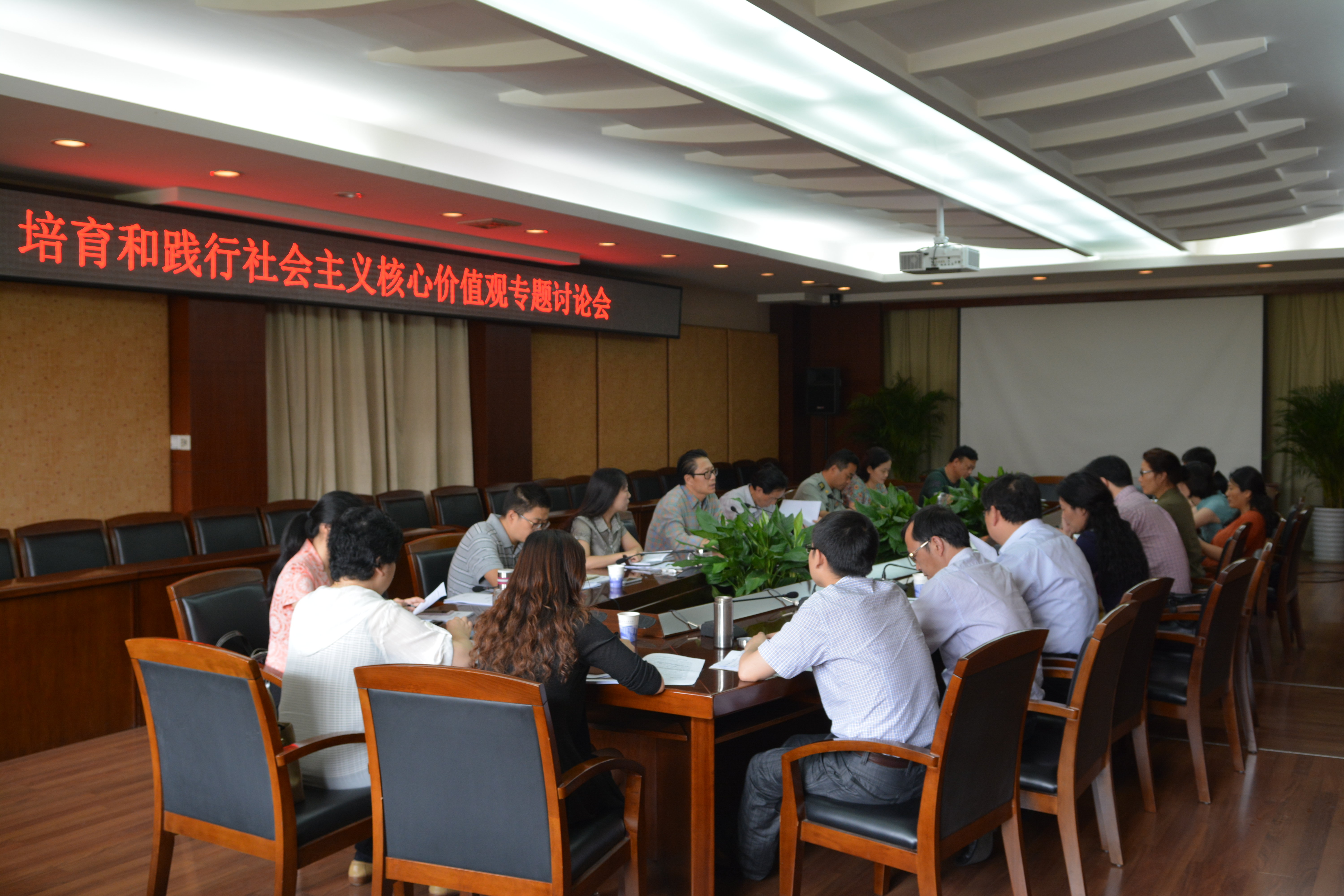 【本网讯】5月13日下午,培育和践行社会主义核心价值观专题讨论会在行政楼第七会议室召开。学校党委书记赖廷谦、副校长于世祥,党政办公室、组织人事处、宣传统战部、驻校选培办、学生工作处、校团委等部门负责人,政治学院院长,各学院党总支书记、副书记,学生工作处相关人员参加了讨论会。会议由于世祥主持。