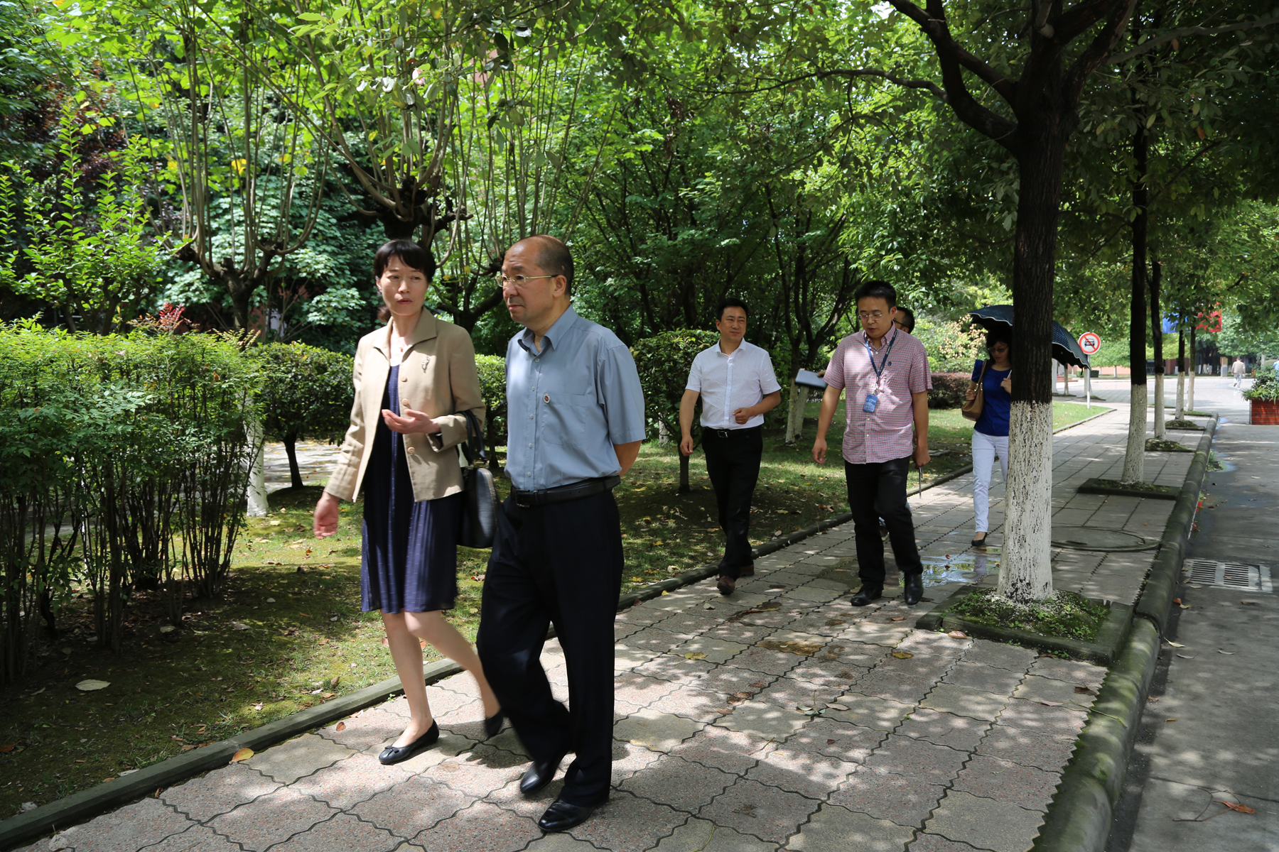 座谈会后,中国核动力研究设计院的来宾重点考察了我校的生态停车场、校园行道、大气楼等重点建筑,他们被我校厚重的历史积淀、幽雅的校园环境所吸引。