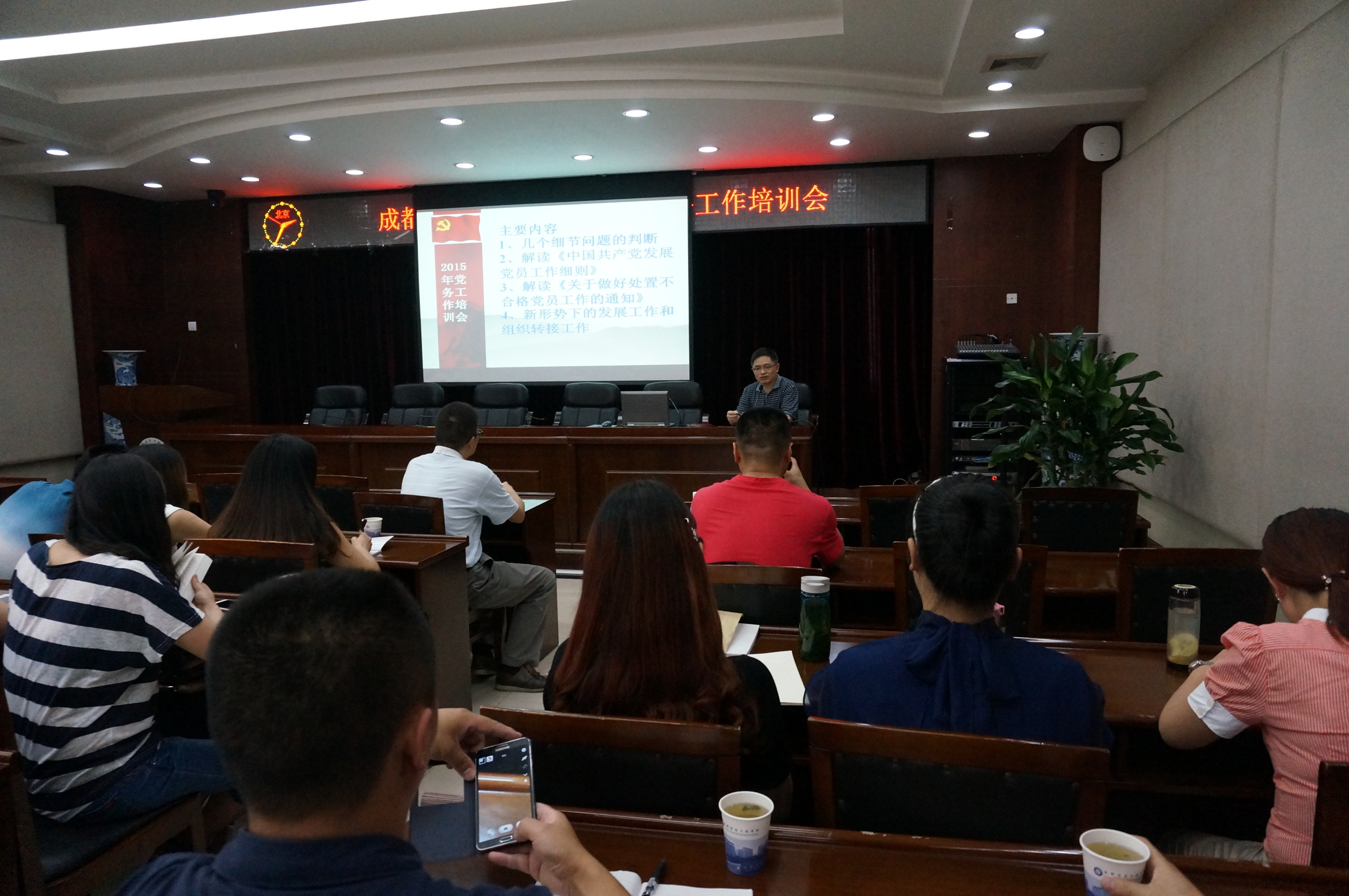 机关党总支书记兼组织人事处副处长王晓锋对《中国共产党发展党员工作细则》的主要内容、特点和发展党员工作的总要求、基本原则、主要流程等进行了详细讲解。他对《关于做好处置不合格党员工作的通知》进行了解读,并讲解了新形势下发展党员和党员管理工作的具体要求。最后,王晓锋对学校近期党务工作进行安排部署,要求各支部认真做好毕业生党员教育管理工作和党组织关系转接工作,在毕业生党员离校前要集中开展一次以“永葆共产党员先进性”为主题的党性教育活动,引导毕业生党员立足岗位争优秀,进一步强化党员意识,增强组织观念和纪律观念,并指导和帮助毕业生党员离校后转接好党组织关系。