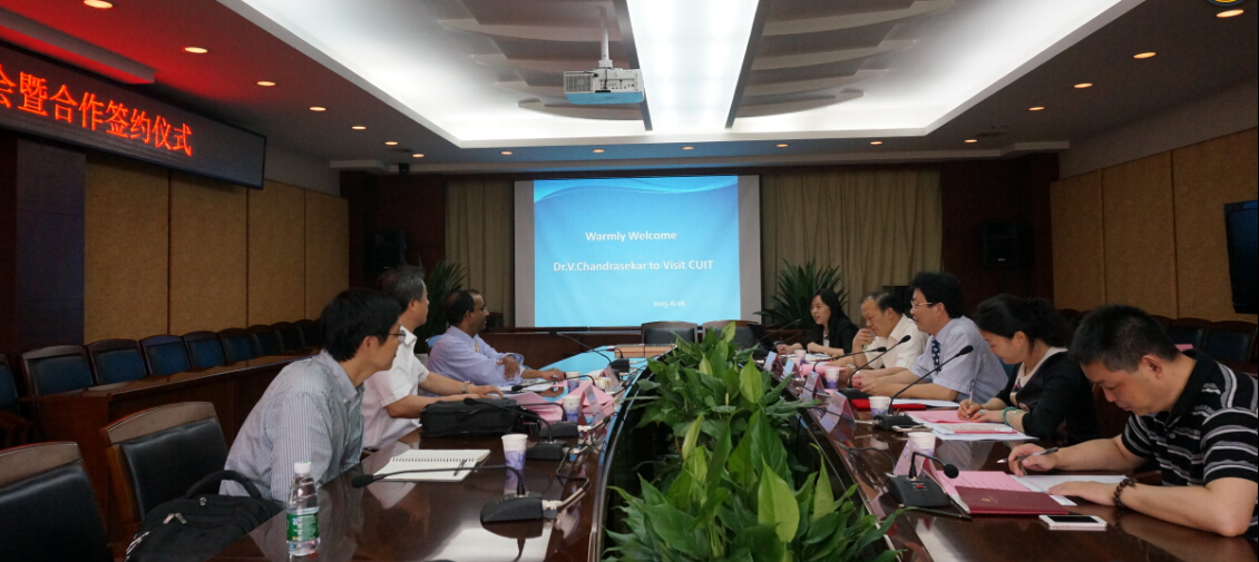 Cha ndrasekar对我校领导的热情接待表示感谢,对我校已取得的成就表示赞赏,并就美国科罗拉多州立大学百年来办学情况、特别是大气科学等相关学科的成就及教学、科研情况进行了简要介绍。同时,Cha ndrasekar认为科罗拉多州立大学与我校在大气科学、大气探测等学科设置、研究方向具有许多相似之处,认同与我校在气象雷达系统研究等方面可以开展深入交流和合作,通过建立气象探测联合实验室、联合培养博士等方式共同促进大气科学相关学科的发展。
