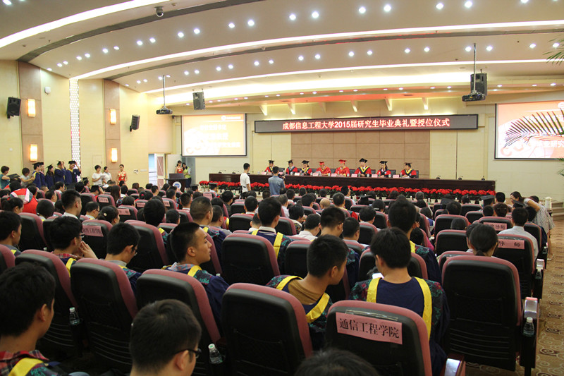 陈宇升同学代表全体毕业研究生向母校、导师、亲人、同窗和学校全体教职员工致以崇高的敬意和衷心的感谢!他说,回顾三年学习生涯,老师勇于探索刻苦攻关、同学不断攀登学术高峰令人印象深刻;回望三年青葱岁月,风景优美的校园景致、丰富多彩的社团活动、激动人心的运动呐喊都让同学们无比留恋。他表示,2015届毕业研究生将坚持内心最真实的梦想,在今后的生活中诠释“大气精神”和“诚信品质”,铭记校训不忘校风,共同相约成信大八十华诞!
