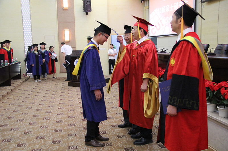 毕业典礼后举行了隆重的学位授予仪式,校学位评定委员会主席周激流、副主席余万伦逐一为2015届全体毕业研究生授予了硕士学位。