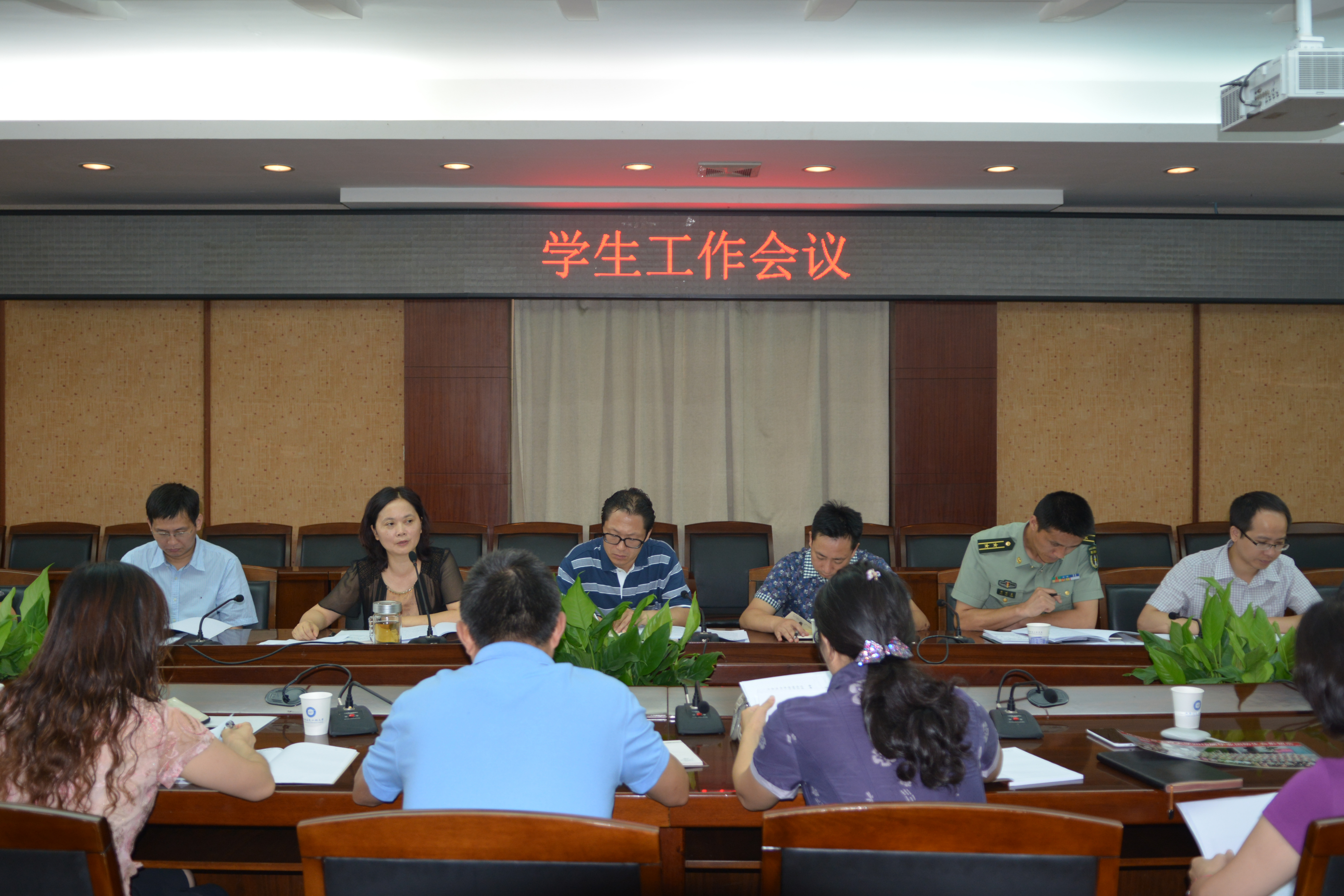 会上,研究生处副处长朱西平就研究生新生接待及入学教育作安排;学生工作处副处长潘光林从迎新工作的主要时间安排,各学院、后勤服务公司、各职能部门的任务和职责等方面,对2015级新生入学接待和入学教育工作做了详细的安排;驻校选培办干事安排了国防生新生报到事宜和国防生暑期集训工作;后勤管理处处长羊裔高就暑期留校学生宿舍管理、新生寝室安排等作说明。