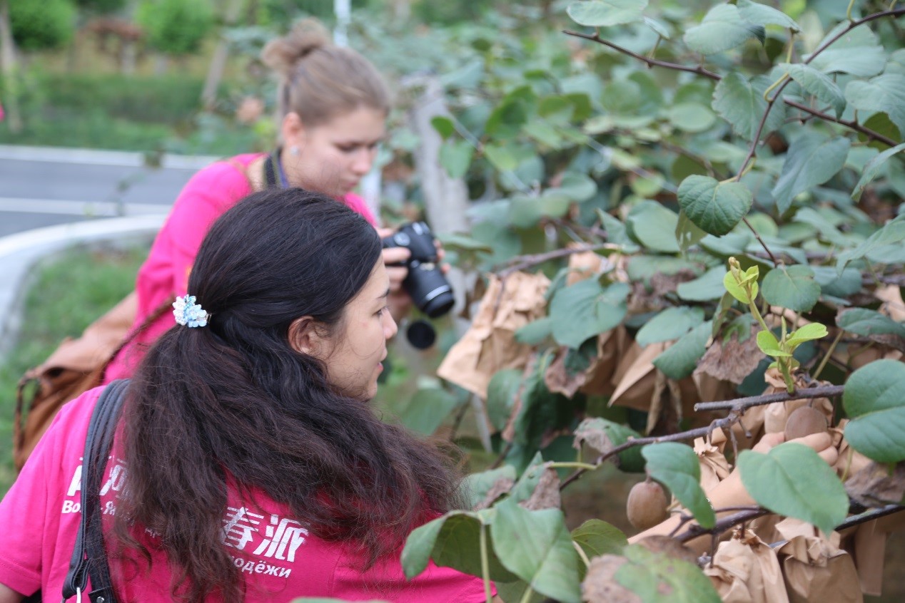 在国家级优质猕猴桃示范区,中俄青年实地参观了联想佳沃猕猴桃示范基地,了解园区发展现状及特色优势,中俄青年对园区的物联网智能管理系统非常感兴趣,他们学习并动手操作园区物联网系统。