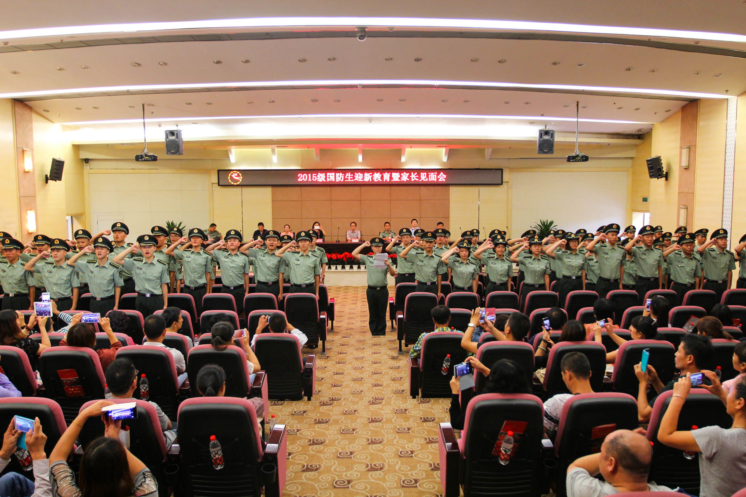 “我为我今天的选择而骄傲,我为我明天的事业而自豪,我必将坚定从军信念,献身强军实践……”9月10日,学校在国际会议厅召开了爱体育网页版2015级国防生迎新教育暨家长见面会。学校副校长于世祥,驻校选培办王主任,学生工作处处长戴丽红、副处长陈智勇,大气科学学院党总支副书记缪燕平、资源环境学院党总支书记刘绍全、信息安全工程学院党总支书记许鸿涛,驻校选培办干事,学生工作处老师,全体2015级国防生新生及部分高年级国防生参加了会议。