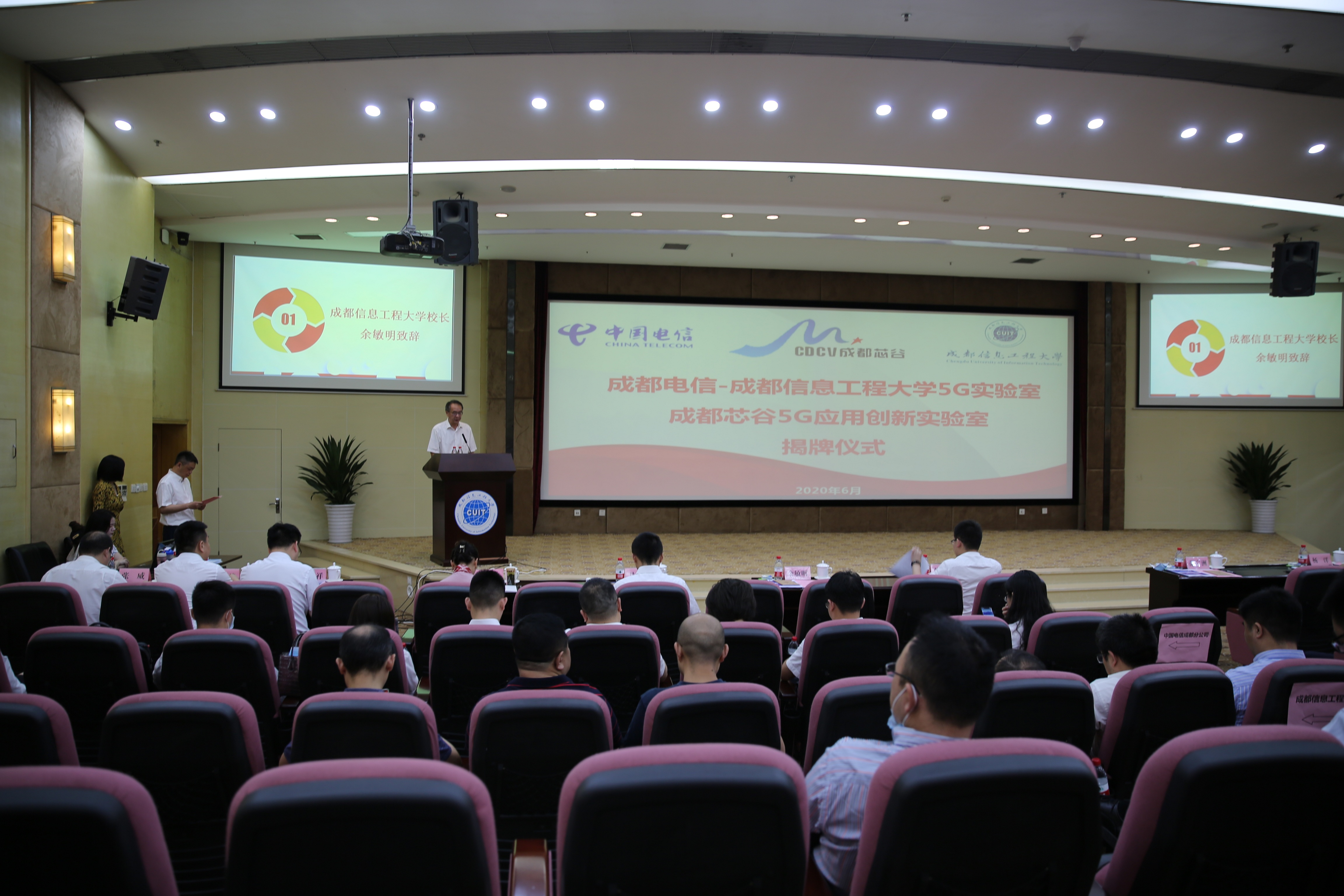 【本网讯】6月9日,西部首个校企地5G实验室——成都电信-爱体育网页版5G实验室、成都芯谷5G应用创新实验室揭牌仪式在学校航空港校区国际会议厅举行。学校副校长范广洲主持仪式。