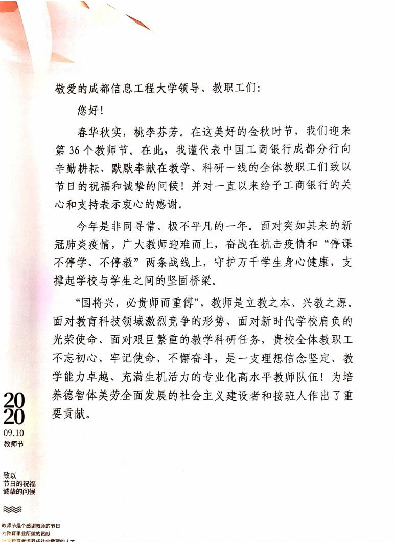 上一条:【老师,您好】中国工商银行盐市口支行领导一行慰问我校教师