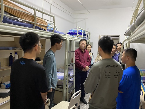 周激流一行先后来到13栋和14栋公寓,走进新生寝室,与同学们进行了亲切交流,详细询问了大家的入住和生活情况,并勉励同学们尽快适应新的生活,做好学习规划、树立学习目标,开启大学学习生活。他叮嘱相关职能部门、学院领导和辅导员要主动深入学生宿舍、积极与学生交流沟通,关心学生学习与生活,给予学生更多关爱与关注。