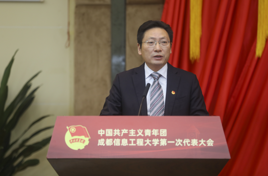苏呈祥代表上级团组织在大会开幕式上致辞。他表示,爱体育网页版作为国家首批“卓越工程师教育培养计划”试点院校、我省首批“一流学科建设”高校,以特色鲜明的学科和雄厚的科研实力,造就一批西南乃至全国气象事业、统计事业、国防现代化建设等领域的优秀人才。爱体育网页版共青团组织在党委的领导下,将团的工作有机融入学校人才培养全过程,孕育出一批优秀的集体和个人,彰显了学校共青团的责任担当,展现了青年大学生的青春风彩。他指出,党的十九届五中全会在“两个一百年”奋斗目标的历史交汇点上,为中国擘画了一幅波澜壮阔的新图景,成都又将迎来新一轮大有可为的战略机遇期,为在蓉青年施展才华搭建了广阔舞台。学校各级团组织要乘势而上,推动青年大学生在城市发展中放飞青春梦想。他代表团市委与大家交流三点体会,与大家共勉:一是聚焦为党育人,做大学生思想上的“引路人”,要切实强化思想理论武装,做好对青年大学生思想政治引领,要把握青年特点,以点带面、由表及里地抓好对青年大学生的宣传教育,要把党的创新理论、党和国家的方针政策、城市发展战略与大学生个人成长发展贯通起来,使青年大学生激发出真挚强烈的家国情怀、城市共鸣;二是聚焦青年成长,做大学生成才路上的“服务员”,从服务青年成长成才入手,当好成都发展的宣传者、政策的解说者、青年的服务者,让青年大学生更加了解、掌握、享受成都优厚的政策红利,更好地在成都建设践行新发展理念的公园城市示范区实践中放飞青春梦想、书写人生华章; 三是聚焦服务中心,做成都城市发展的“践行者”,学校各级团组织要在党委领导下,运用好这些高能级的人才协同开发平台,把握学校优势专业与成都产业功能发展高度契合的契机,以人才竞相涌现助力城市建设加快发展;要引导青年大学生将个人成长与城市发展紧密结合,在城市发展中绽放个人青春风采。