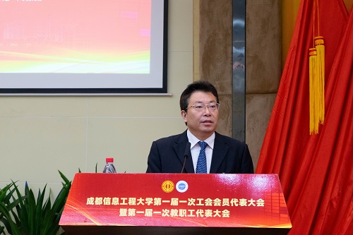 苗勇代表四川省总工会向大会的召开表示热烈的祝贺,向与会代表、全体教职工、工会会员和工会干部等致以亲切的问候和崇高的敬意,对学校党政表示衷心的感谢。他祝贺大会取得圆满成功,并代表省总工会对学校提出三点希望:第一,希望爱体育网页版广大教职工进一步砥砺奋进、敬业奉献,当好推动学校发展的主人翁;第二,希望学校党政进一步依靠教职工、团结教职工,凝聚创新发展强大合力;第三,希望学校工会进一步担当作为、锐意进取,奋力开创工会工作新局面。
