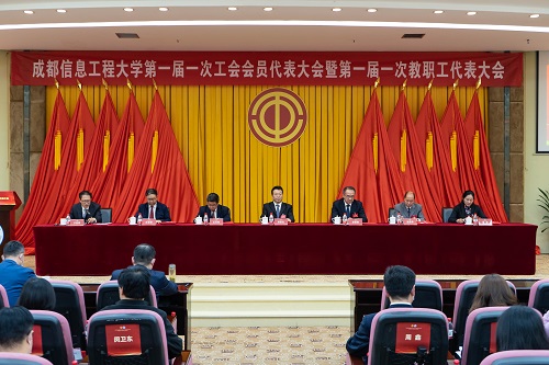 【本网讯】4月23日下午,学校第一届一次工会会员代表大会暨第一届一次教职工代表大会圆满完成预定的各项议程,在航空港校区国际会议厅顺利闭幕。四川省总工会党组成员、副主席苗勇,四川省教科文卫工会主席李长春,学校领导、全体代表参加闭幕会。学校党委常委、副校长、工会主席于世祥主持闭幕会。