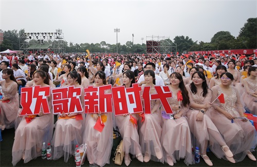 合唱比赛结束后,全体成信人大合唱《没有共产党就没有新中国》,将活动推向了高潮,抒发了成信人永远跟党走,坚定初心和使命担当的豪情壮志,共同献礼党的百年华诞。
