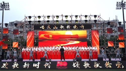 “我把党来比母亲”,离退休党委的《唱支山歌给党听》,唱出了对中国共产党矢志不渝的感恩;后勤基建党委、图书馆直属党支部、体育部直属党支部用《歌唱祖国》表达了成信人的爱国情和报国志;资源环境学院师生用宛转悠扬、情深意切的《十送红军》唱出了对中国共产党的深切爱戴。
