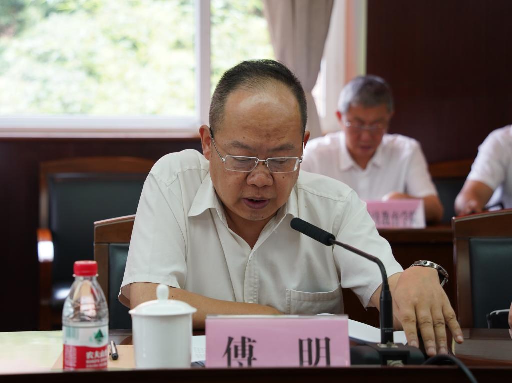 傅明围绕“强化审计,护航教育”“提高认识,统一思想”“全力支持,积极配合”三方面强调了内部审计对高等教育健康发展的重要性。他提到,开展领导干部经济责任审计是中国特色社会主义审计监督制度的重要内容,既是加强干部监督管理的重要举措,也是促进干部转变领导方式,提高科学发展的重要内容。他对领导班子提出四点希望:一是认真履行岗位职责,及时提供真实资料,如实反映情况。二是涉及审计相关部门负责人出差等情况应及时告知,落实好工作交接责任。三是全体教职工可以随时就学校有关情况与审计组沟通交流,以便审计组更快、更全面地推进审计工作,客观公正地界定评价被审计事项。四是学校要边查边改,针对审计中发现的问题,要压紧压实责任,立改立行,完成制度措施,形成常态工作机制。