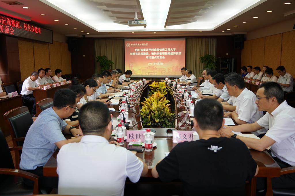 【本网讯】7月2日上午,学校在航空港校区第七会议室召开经济责任审计进点见面会。四川省审计厅党组成员、副厅长、审计组组长李文双,省审计厅教科文卫审计处处长、审计组副组长邓建华,省委教育工委委员、省政府教育督导委员会专职副主任、教育厅总督学傅明,副总督学龚崇儒,学校领导班子全体成员,审计组其他成员、学校职能部门主要负责人和各学院院长参加了会议。邓建华主持会议。