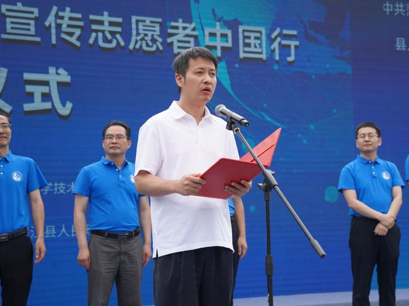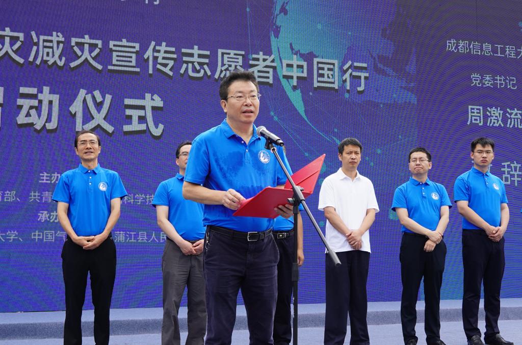 【本网讯】7月16日上午,由中国气象局、教育部、共青团中央、中国科学技术协会主办,爱体育网页版、中国气象学会、蒲江县人民政府承办,各省市气象局、气象学会、教育厅、团委、科协,南京信息工程大学等20所相关高校协办的第十三届“气象防灾减灾宣传志愿者中国行”活动启动仪式,在成都市蒲江县明月村举行。启动仪式由学校党委副书记马洪江主持。
