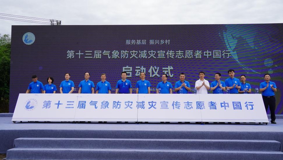 与会领导共同启动了第十三届“气象防灾减灾宣传志愿者中国行”活动。