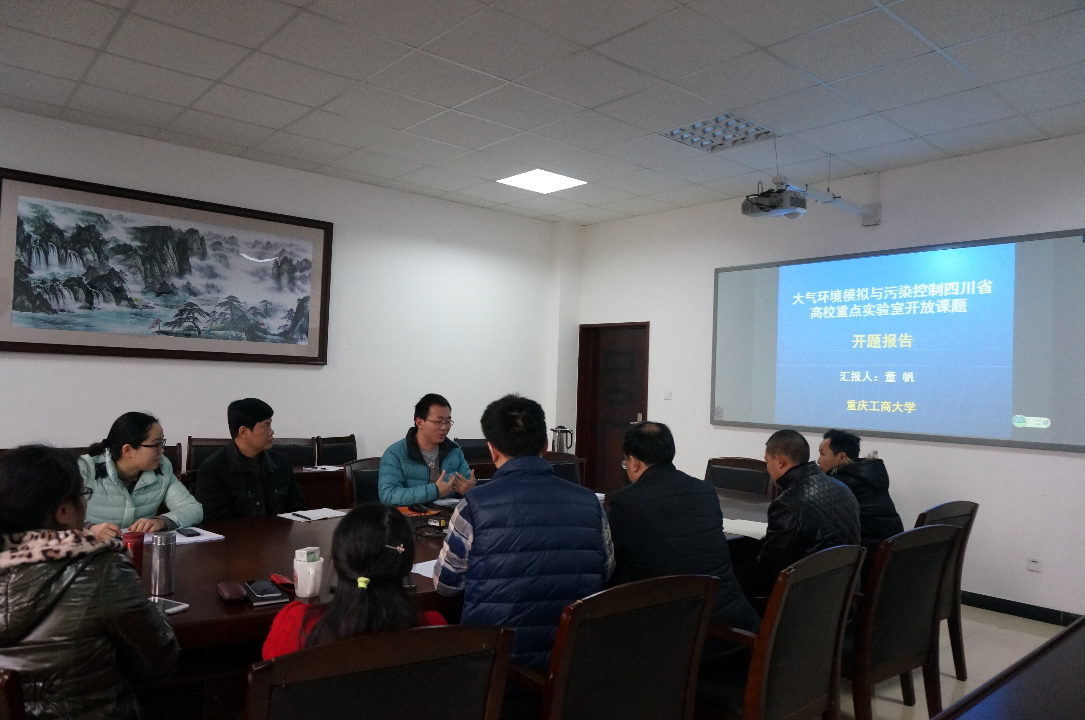 [本网讯]1月13日下午两点,在资环楼221会议室举行的开题汇报会准时开始。大气环境模拟与污染控制四川省高校重点实验室主任徐成华教授、资源环境学院院长叶芝祥、各立项项目负责人参加了会议。