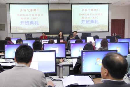 【本网讯】4月8日上午,全国气象部门第49期地市级预报员轮训班开班典礼在气象楼气象实习台101教室举行。参加典礼的有大气科学学院党总支书记张小红,副书记缪燕平,副院长陈权亮以及培训班班主任瞿婞、吴知之和全体培训学员。开班典礼由瞿婞主持。