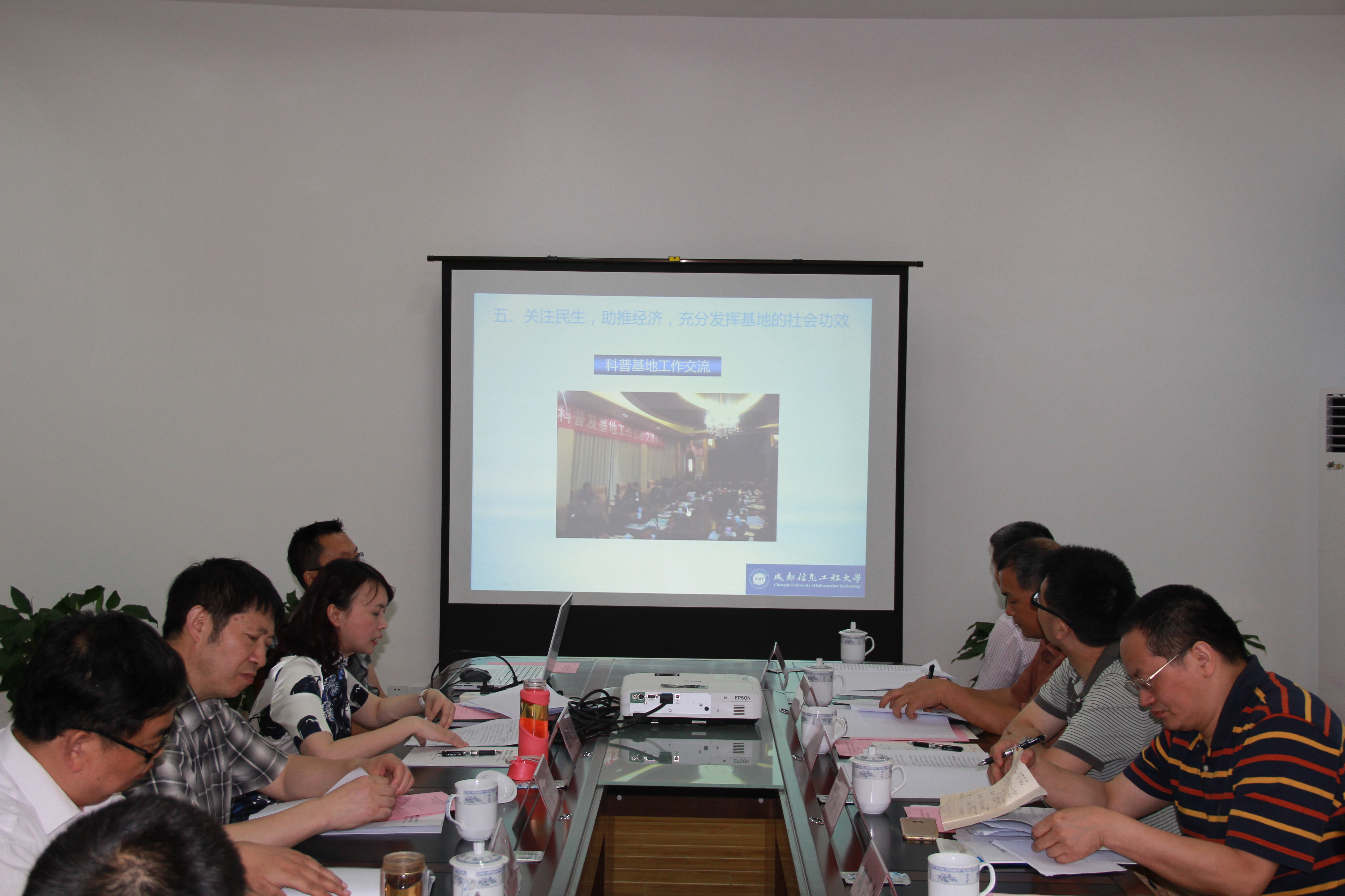 基地负责人曹邦英教授以“传播气象文化、科学防灾减灾、关注百姓民生、助力经济发展”为主题汇报了科普基地3年来就如何利用自身特色优势,充分发挥社科普及基地主阵地作用所开展的形式多样的社科普及工作做了汇报陈述。来自四川省委宣传部、四川师范大学、成都理工大学、西南民族大学的专家就基地软硬件设施建设如组织机构、人员配备、科普办公场所、设施设备、经费保障、科普资料及科普读物的出版、科普活动开展情况等进行实地查看,并就基地建设相关问题进行现场询问。专家组成员分别做了点评和建议。
