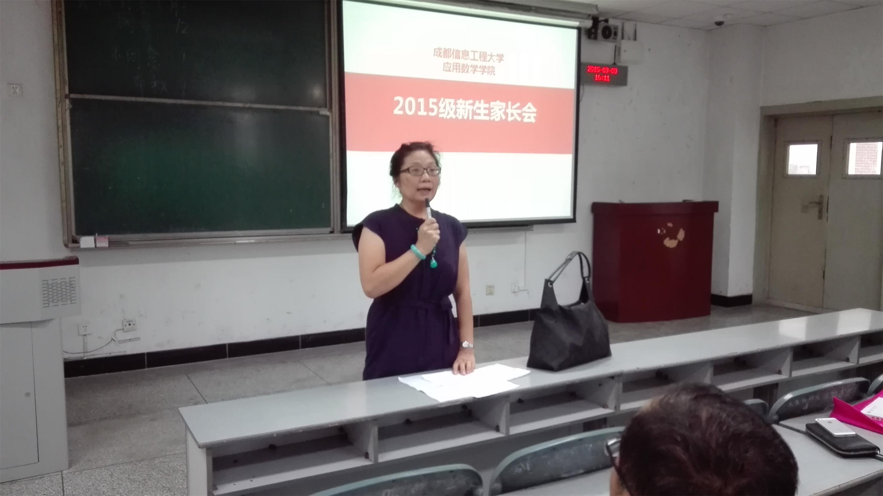 【本网讯】9月9日,应用数学学院在1308教室召开了2015级新生家长见面会。应用数学学院党总支副书记周宇光参加了此次见面会。该会由新生辅导员高妮娜主持。