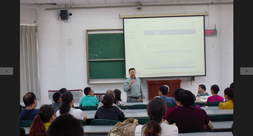 【本网讯】9月9日,随着新生报道工作的正式展开,电子工程学院新生家长见面会也在下午3:00在航空港校区4313教室顺利进行。电子工程学院院长杨玲,党总支书记张斌兵,副院长黄启宏,副书记彭勇,分团委书记邓毅及各位新生辅导员参加了此次家长会。