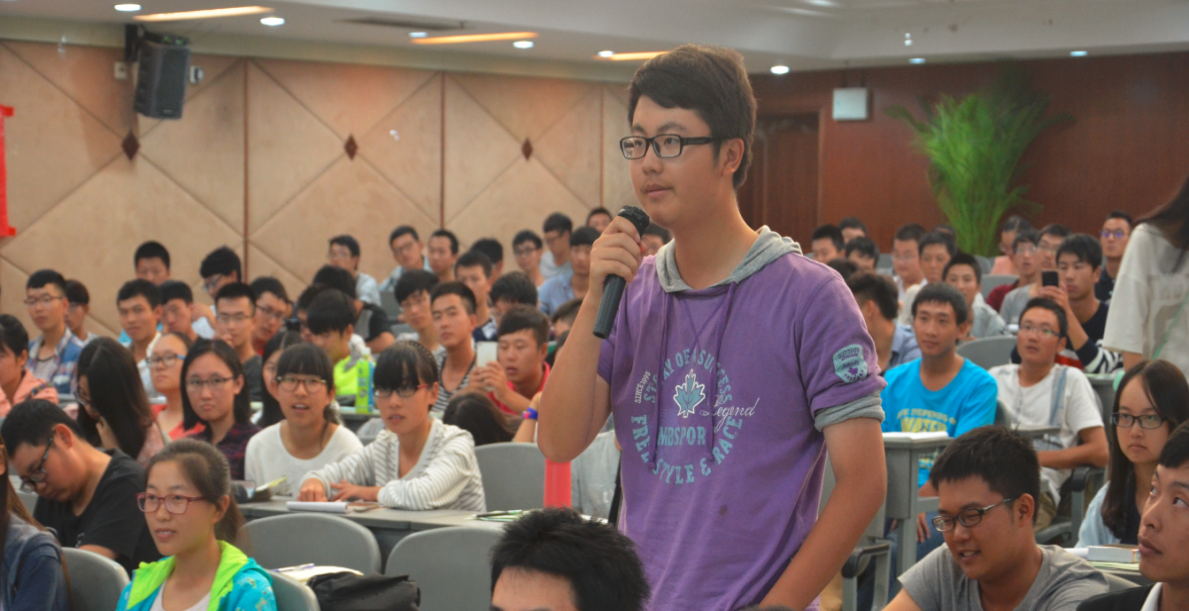 随后学院2011级优秀毕业生余猛(成都青柠互动科技有限公司CEO),2013级学长学生会主席任军伟向新生介绍他们的大学历程并分享了他们的学习经验。