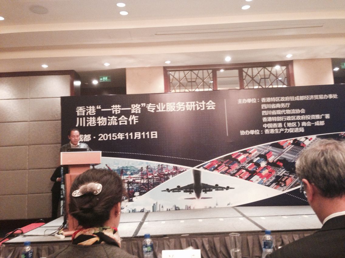 【本网讯】11月11日,香港“一带一路”专业服务研讨会——川港物流合作会议在成都香格里拉大酒店召开,此次会议由香港特区政府驻成都经济贸易办事处、四川省商务厅、四川省现代物流协会、香港特别行政区政府投资推广署、中国香港(地区)商会——成都联合主办,由香港生产力促进局协办。物流学院李映兰老师带领物流管理和物流工程的20多位同学出席了此次会议。