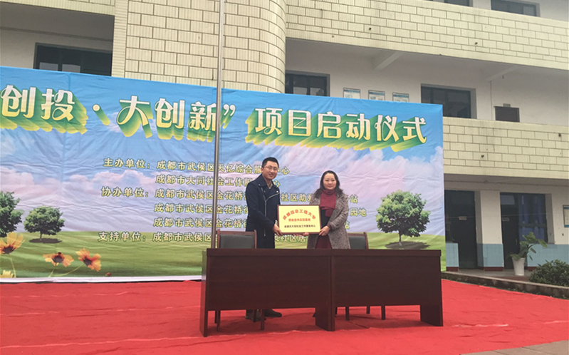 【本网讯】12月4日下午,为了满足学院社会工作专业硕士和本科专业建设对人才培养实习环节的需求,学院副院长(主持工作)廖思湄、副院长徐砺、社会工作教研室主任陈锋等一行,来到成都市武侯区金花桥街道金凤社区参加了“微创头·大创新”项目启动仪式,并与成都市大同社会工作服务中心举行了实习基地签约和授牌仪式。