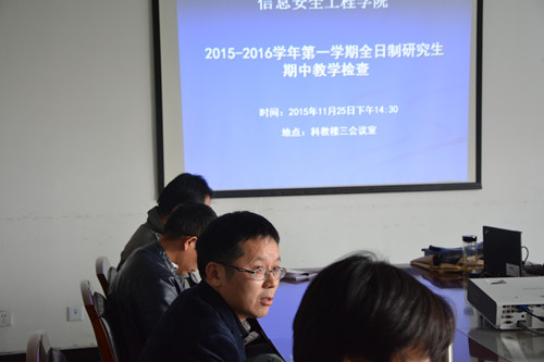 【本网讯】为进一步了解教学进程及效果,增强师生联系,信息安全工程学院于11月25日举行了2015-2016学年第一学期硕士研究生教学检查学生座谈会。
