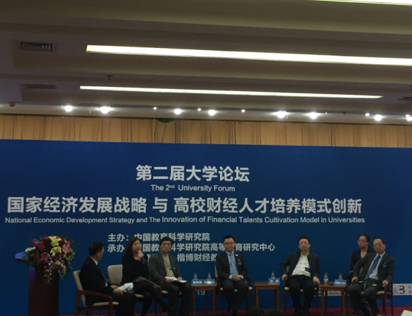 论坛由中国教育科学研究院陈子季副院长主持,论坛主要围绕当前国家发展战略的实施及其机遇与挑战、国家经济发展战略与财经类人才需求以及高水平财经类人才培养与高校办学模式改革等三个问题展开讨论。