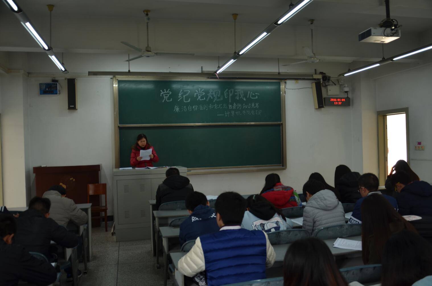 【本网讯】1月4日中午,计算机学院党支部在航空港1104教室开展“党纪党规印我心”廉洁自律准则和党纪处分条例知识竞赛,学院13级至15级部分学生党员参加了本次竞赛。