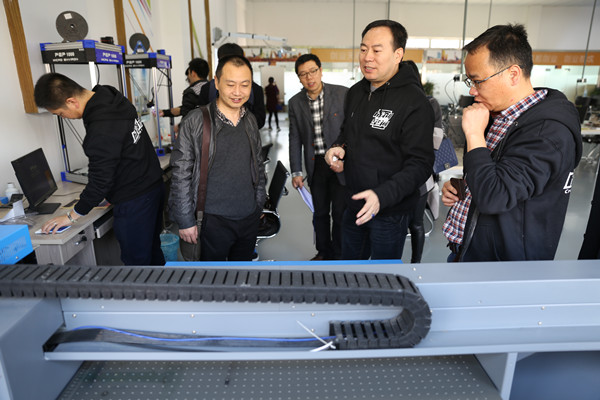 成都研究院副院长邹靳带领考察团参观了成创空间的创业咖啡大厅、商务中心、路演大厅和会议室等公共服务设施以及3D打印机、工业数码打印机等开放使用的开源设备,并对其进行了详细的介绍,参观结束后,在成创空间微路演室进行了交流座谈会。