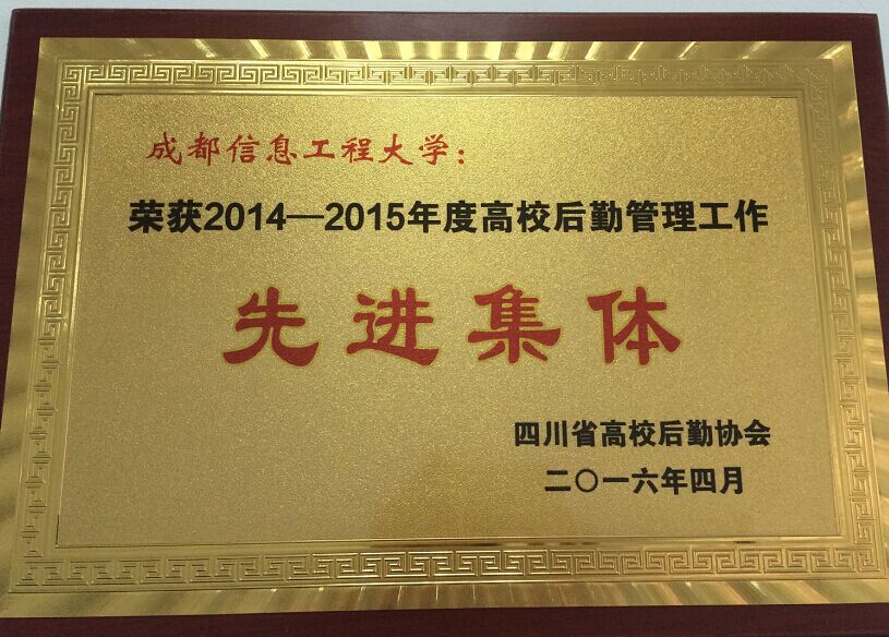 年会对协会“2014-2015年度高校后勤管理工作先进集体和先进个人“进行表彰。我校原后勤管理处处长羊裔高,后勤管理处质检科科长刘畅被评为“2014-2015年度四川省高校后勤管理工作先进个人”。