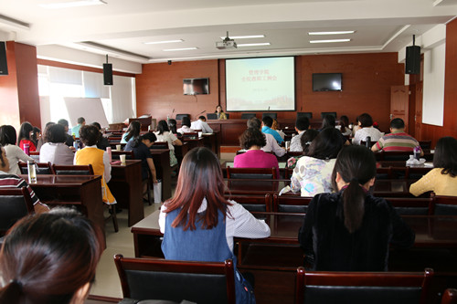 【本网讯】5月13日上午,管理学院在龙泉二会议室召开全院教职工大会。院长黄萍主持了会议。