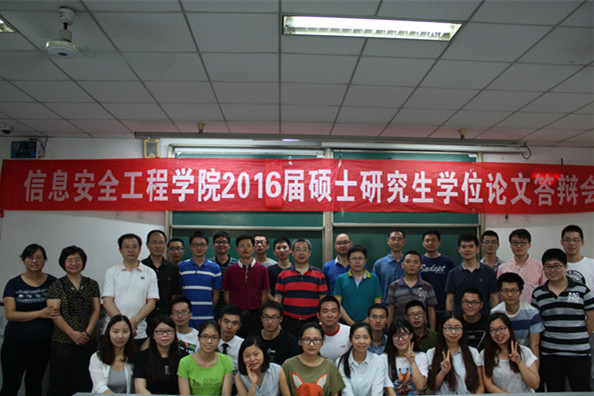 【本网讯】6月6日,信息安全工程学院2016届硕士研究生学位论文答辩会分别在第一教学楼1202、1203、1206教室顺利举行。2016届计算机科学技术、信息安全、物联网技术专业12名学术型研究生和计算机技术专业15名专业学位研究生参加了答辩会。